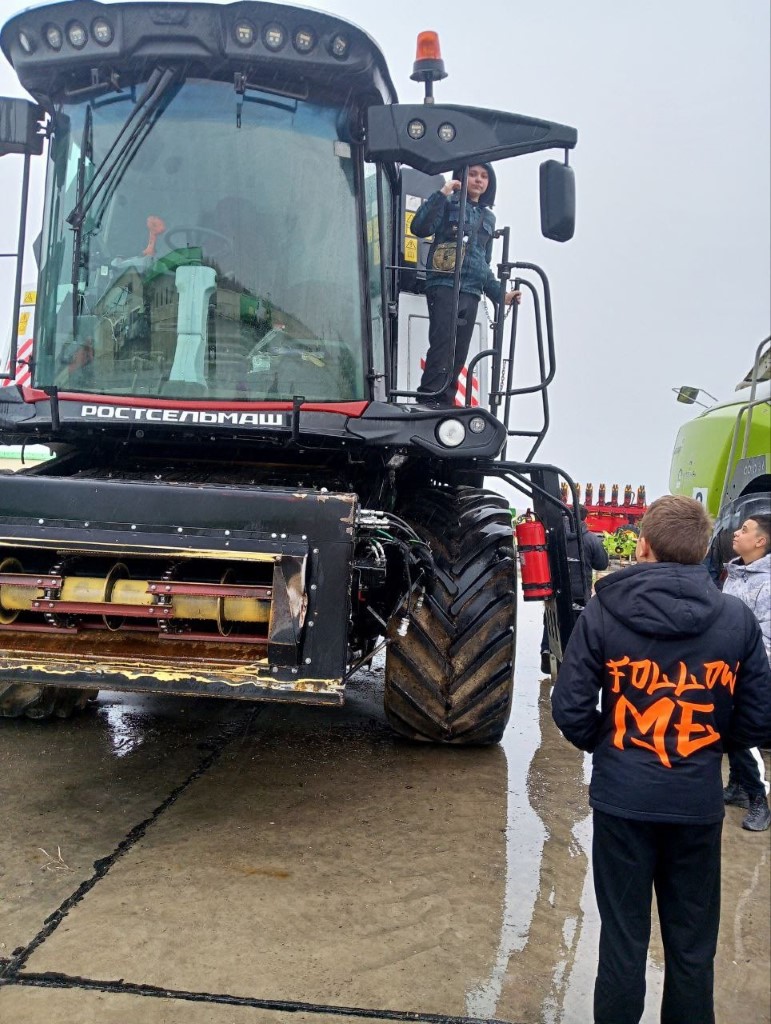 Ребятам показали используемую предприятием новейшую сельскохозяйственную технику, рассказали о том, для чего она предназначена.