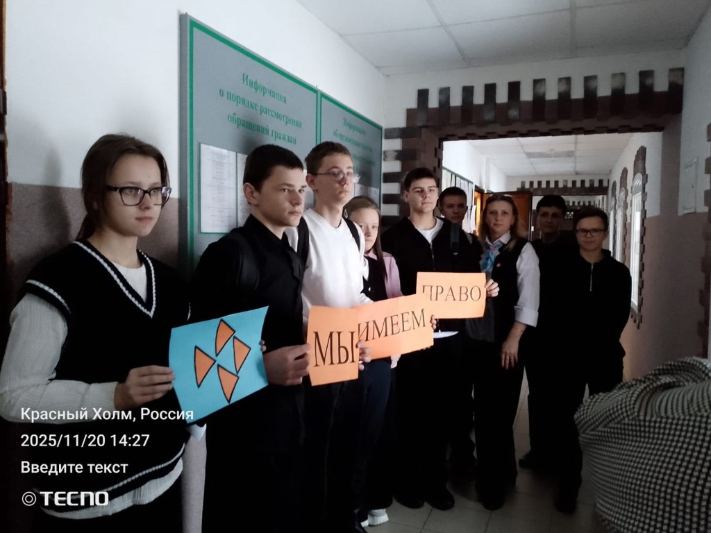 20 ноября, в День правовой помощи детям, заместитель главы по социальным вопросам Краснохолмского муниципального округа - Сизова Ольга Николаевна, инспектор по делам несовершеннолетних - Кайнелайнен Нелли Николаевна, совместно с Добряковой Ольгой Григорьевной, начальником Краснохолмского межмуниципального филиала ФКУ УИИ УФСИН России по Тверской области, провели для ребят нашей школы познавательную и важную беседу.