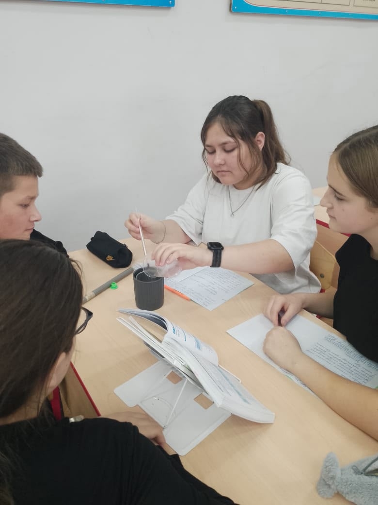 На базе Центра "Точка роста" в кружке дополнительного образования "Энергетика" ученики 8 классов работали над лабораторной работой "Определение удельной теплоемкости вещества".