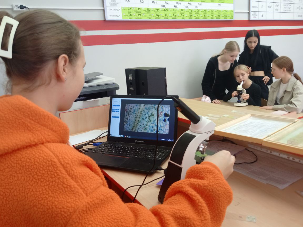 Как всегда увлекательно прошла работа с цифровым микроскопом, в ходе которой все смогли увидеть клетки растений и животных.
