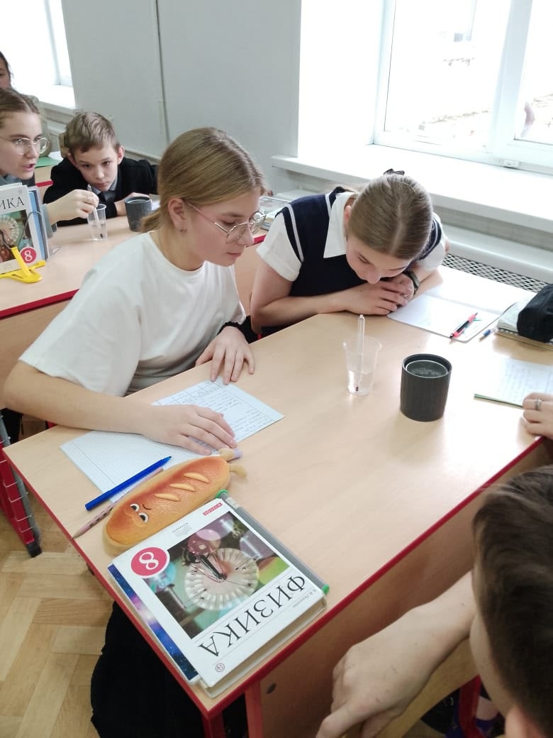 В ходе работы они научились находить удельную теплоемкость твердого тела с помощью уравнения теплового баланса, на опыте наблюдали достижение теплового равновесия системы.