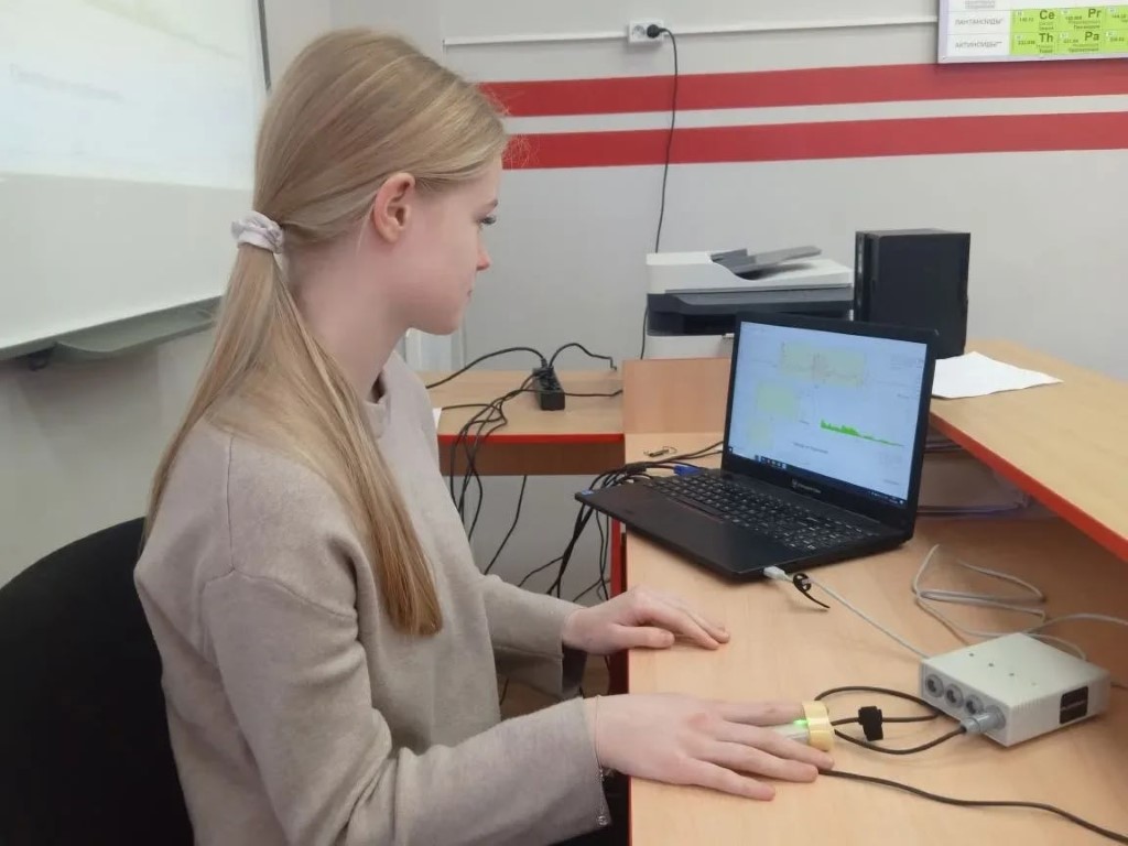 Ученики 9 класса, посещающие кружок дополнительного образования "Биологический практикум", продолжают изучать удивительный мир человеческого организма с использованием современного оборудования центра «Точка роста».
